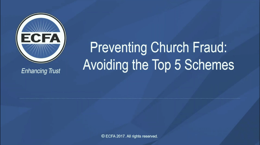 An ECFA webinar-on-demand with Rollie Dimos, a certified fraud examiner and certified internal auditor.  Rollie has a deep desire to help church leaders reduce the risk of fraud and increase financial accountability and integrity.  As an auditor in the government and nonprofit sectors, Rollie has been helping leaders assess the strength of their organizational controls for over 25 years.