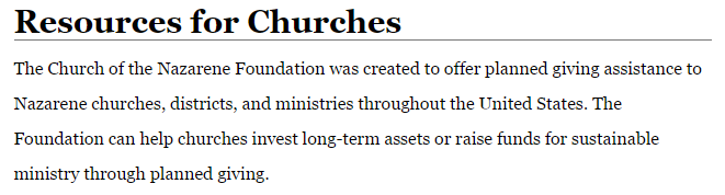 Explore ways that the Church of the Nazarene Foundation can assist your ministry through planned giving or long-term asset investment.