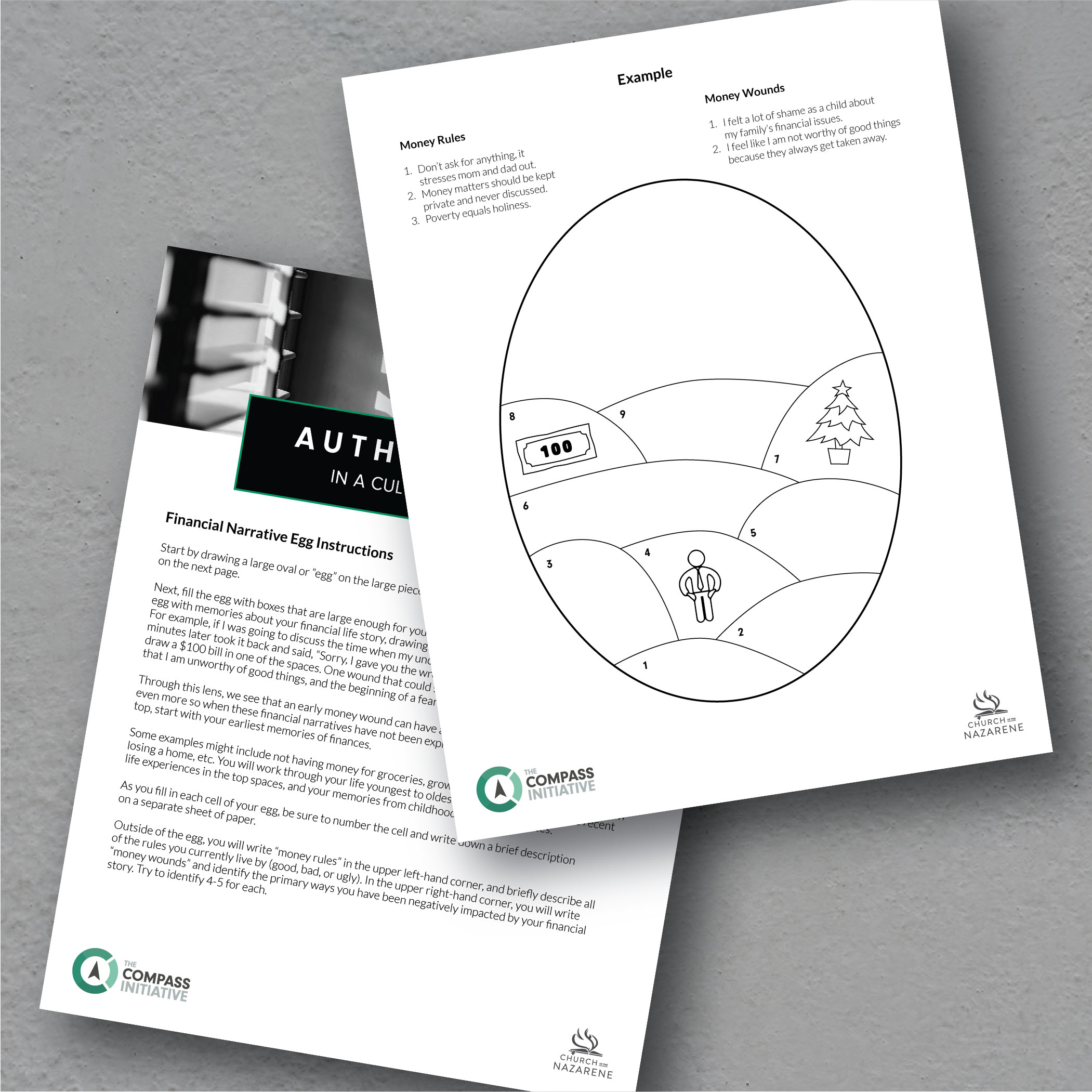 A participant handout with instructions and an example for the Financial Narrative Egg Exercise.