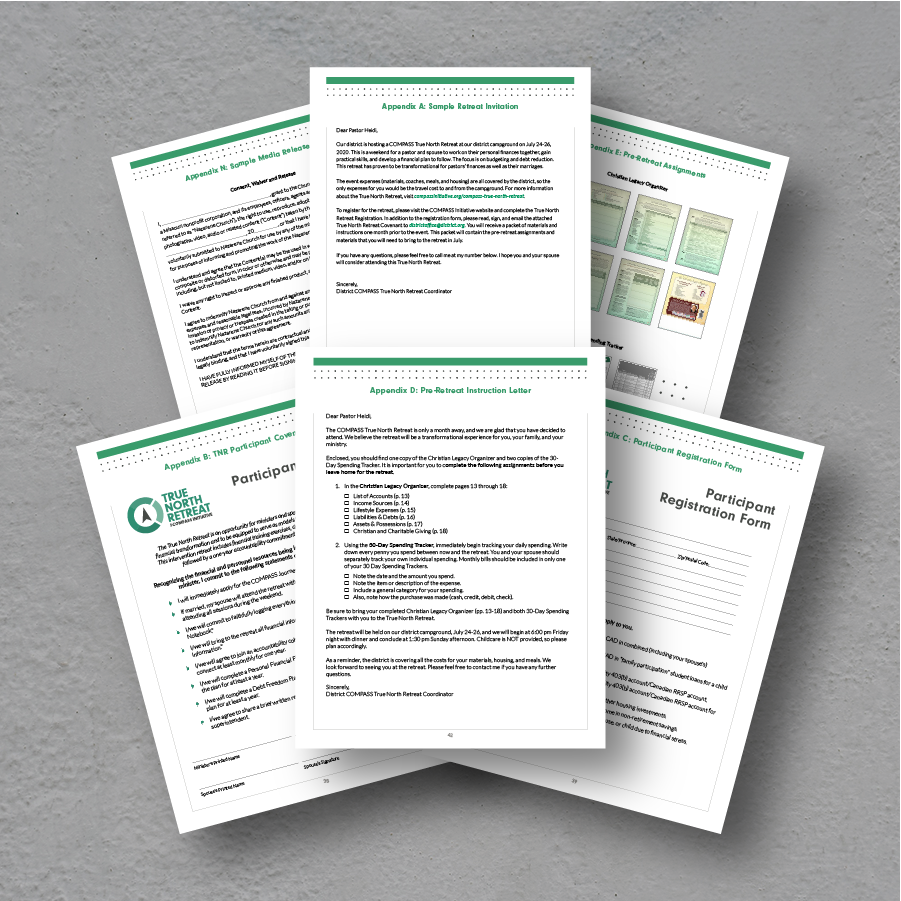 Here are several communication templates that you may use for hosting your own True North Retreat such as a sample retreat invitation, a participant registration form, a pre-retreat instruction letter, the pre-retreat assignments, the True North Retreat participant covenant, and a sample media release forms for participant pictures or testimonies.